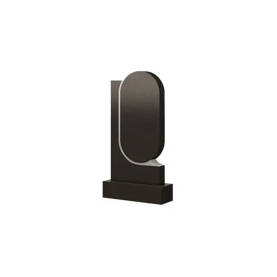 Одна из разновидностей памятников фигурной формы. Левая боковая сторона выполнена в классических прямых вертикальных линиях, образующих на вершине надгробия остроконечный угол. С правого края вглубь стелы уходит вытянутый крупный овал, задающий общий тон мемориальному изделию. Одну из граней этой геометрической фигуры плавно обрамляет белая, высеченная в камне дугообразная вставка, подчеркивая и зрительно увеличивая овальную часть плиты. В силуэте такого надгробия переплетается целая гамма эмоций – это и уважение, и грусть, и нежность, и любовь, и светлая память.