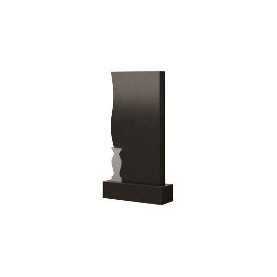 Модель памятника представлена в форме ассиметричного прямоугольника, имеющего ровную и прямую боковую сторону справа и изящно изогнутого слева. Дополнением к общему виду надгробия является контрастная вставка в виде вазы. Она расположилась в нижней части плиты и служит своеобразным декоративным элементом всей мемориальной композиции. Акцентируя на себе внимание, ваза разбавляет строгость сооружения, придавая ему легкую аристократическую элегантность. С помощью такого памятника можно выразить все самые глубокие и искренние чувства к усопшему и достойно оформить место захоронения.