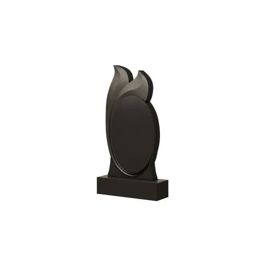 Оригинальная модель памятника необычно затейливой формы. Центральную часть стелы занимает красивый симметричный овал. По левой стороне надгробия, подобно молодому ростку, повторяя округлый контур, тянутся вверх два нежных листика. Их плавные волнистые изгибы венчаются на концах острыми уголками. Прожилковатая линия, пробегающая посередине каждого листка, делает каждый из них визуально объемнее, благодаря чему листочки кажутся намного массивнее, заключенного в их объятия овала. Модель такой формы красиво и достойно оформит любую могилу, сохранив в памяти милые сердцу черты усопшего.