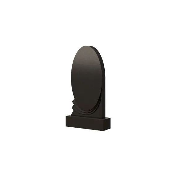 Изящный по своей форме и содержанию памятник. Большая часть стелы выполнена в виде красивого и ровного, немного вытянутого, овала. По правому краю, с середины к основанию проходят полукруглые выступы резных складок, внешне напоминающие собой элегантно ниспадающую драпированную ткань. Эти волнообразные дуги, как бы обволакивают нижнюю часть овала, четко повторяя геометрию его округлых линий. В целом модель памятника достаточно сдержана и лаконична, выражает своим каменным силуэтом немое величие, окутанное утонченной выразительностью и полнотой целостной формы.