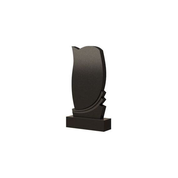 Данная модель памятника имеет замысловатые фигурные очертания. Вся форма изделия как будто состоит из нескольких отдельных элементов, которые гармонично дополнив друг друга соединились в единое и целостное изделие. Здесь можно встретить и четкие прямые линии, образующие острые углы, и плавные дугообразные изгибы, смягчающие общую строгость надгробия. Легким аллюром пробегает по нижней части стелы резная рябь полукруглых складок, добавляя памятному изделию изящной элегантности. Модель надгробия такой формы будет хорошим вариантом обозначения могилы усопшего.