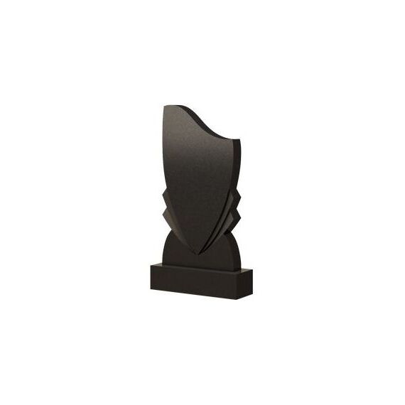 Своей формой надгробие напоминает обломок богатырского меча, вонзившегося в каменную глыбу. От острия клинка в разные стороны разлетаются искры, представленные в изделии полукруглыми складчатыми резными выступами. Верхушка памятника ассиметрична и выполнена в виде красиво изогнутой волнообразной линии, ниспадающей от верхнего левого края к правому и заключенной в остроконечные уголки. От всего внешнего вида памятника веет мужественностью, силой, отвагой, героизмом, которые придают ему особую величественность и благородство. Надгробие такого типа станет красивым памятным атрибутом могилы почившего родственника.