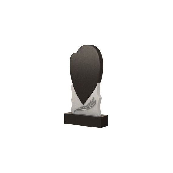 Внешний вид этой модели привлекает внимание своей оригинальностью и художественностью. Основание стелы выполнено в белом цвете и представляет из себя абстрактную фигуру, которая является неким постаментом для основной части стелы в форме сердца. Такое воплощение ритуального искусства способно отразить вечную любовь, испытываемую родными по отношению к усопшему. Кроме того, долю элегантности в изделие вносит изображение лавровой ветви на необработанной поверхности. Представленное украшение является символом мужественности, стойкости и остальных сильных черт характера, которыми покойный обладал на протяжении всего жизненного пути.