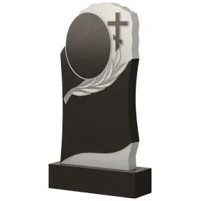 В этом памятнике присутствует как оригинальность и очаровательность, так и символичность, заключающаяся в резных элементах. Пространство, где может быть размещена основная информация об усопшем, располагается у основания стелы. Оно обладает волнообразными чертами и отлично гармонирует с белой вставкой снизу. Для размещения портрета здесь отведено специальное место в верхней части. Это овальная фигура, которую отлично дополняет образ лавровой ветви и силуэт православного креста с правой стороны. Таким образом, надгробный памятник способен отобразить сильные черты характера покойного, а также рассказать о том, что он соблюдал и чтил традиции своей веры.