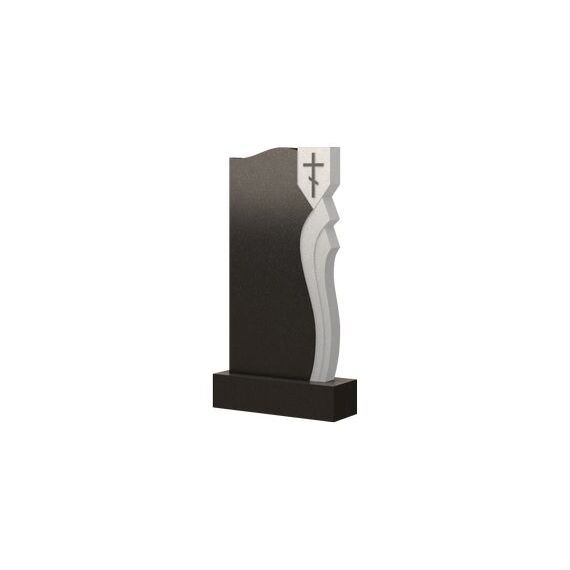 Данная модель представлена в довольно интересном, необычном и контрастном образе. Основное пространство стелы выполнено в черном цвете, которое отлично сочетается с фигурной белоснежной правой стороной. Волнообразная верхушка надгробия увенчана изображением шестиконечного креста, указывающего на вероисповедание покойного. Такой оригинальный образ этого памятника поможет в наилучшей форме рассказать о том, что на протяжении всей жизни, покойный был весьма неординарным человеком, который успел многого добиться и для родных и близких людей навсегда остался любимым и дорогим человеком.