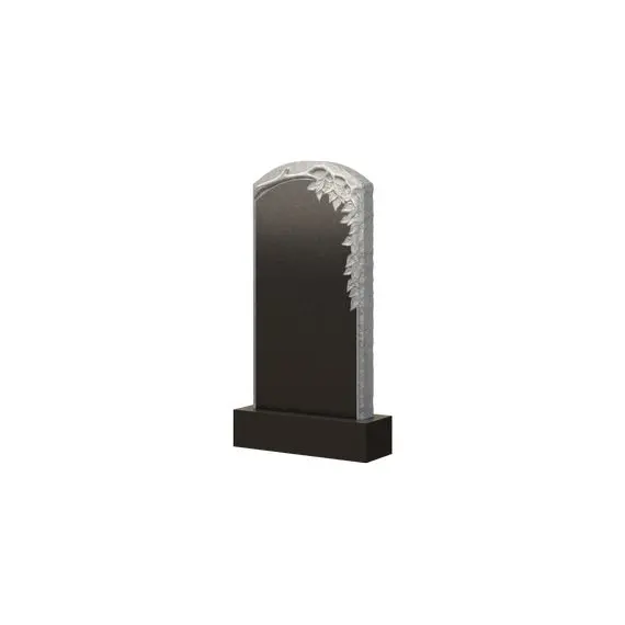 Форма этого памятника состоит из прямых боковых сторон с шероховатой поверхностью и дугообразной верхушки, где и заключается все основное оформление. Оно представляет из себя витиеватую ветвь дерева, с которой свисают листья и украшают центральную часть, а также правый край мемориального изделия. Таким образом, надгробный памятник приобретает природную тематику и тем самым становится способным идеально вписаться в траурную атмосферу сакрального места. Стоит отметить, что с помощью этого надгробия вы сможете представить покойного, как личность, которую все любили и уважали на протяжении всего жизненного пути.