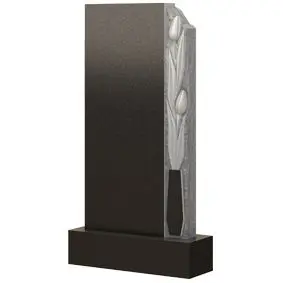 Строгая и лаконичная классика всегда красиво и величественно смотрелась в формах памятников. Данная модель – тому подтверждение. Особая монументальность и вековечность прорисовывается в силуэте этого мемориального изделия, которое не только выразительно подчеркнет особенности личности покойного, но и пронесет его светлый образ через года. Дополняет композицию сооружения контрастный барельеф, оформляющий правую сторону. Нежные, хрупкие тюльпаны, аккуратно помещенные в вазу, контрастным акцентом проходят по всей высоте плиты. Их утонченная фактура придает каменному изделию особую изящность и аристократическую элегантность.