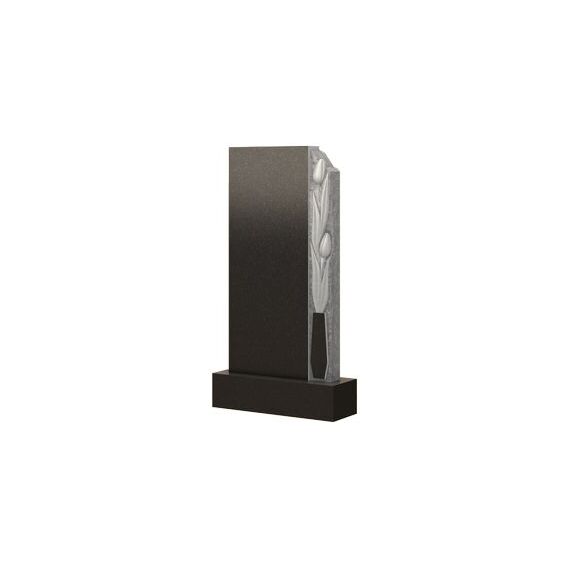 Строгая и лаконичная классика всегда красиво и величественно смотрелась в формах памятников. Данная модель – тому подтверждение. Особая монументальность и вековечность прорисовывается в силуэте этого мемориального изделия, которое не только выразительно подчеркнет особенности личности покойного, но и пронесет его светлый образ через года. Дополняет композицию сооружения контрастный барельеф, оформляющий правую сторону. Нежные, хрупкие тюльпаны, аккуратно помещенные в вазу, контрастным акцентом проходят по всей высоте плиты. Их утонченная фактура придает каменному изделию особую изящность и аристократическую элегантность.