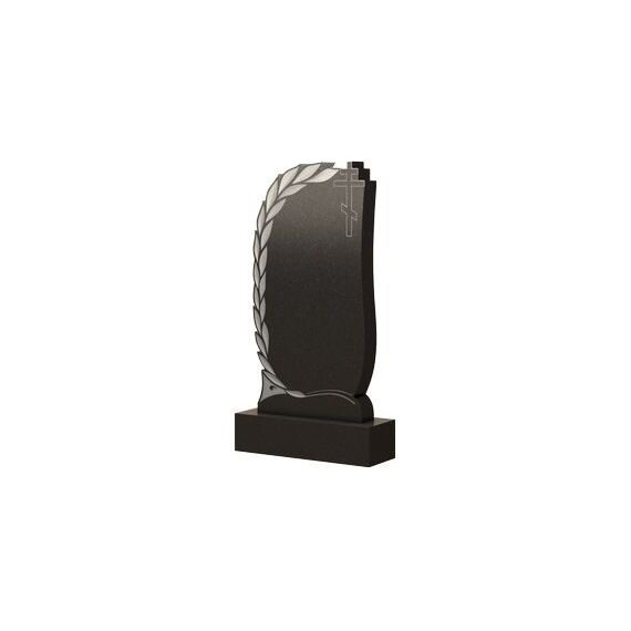 В модели этого памятника гармонично переплелись и строгие сдержанные нотки, и изысканные утонченные мотивы. По своей форме надгробие можно отнести к классическим разновидностям памятников. Его силуэт прочерчивают ровные плавные линии по всему периметру мемориального изделия. Левую боковую сторону обрамляет красивый резной контрастный барельеф – изящная ветка лавра плавной волнообразной дугой огибает надгробие по все его высоте, эффектно декорируя вершину. В правом верхнем углу разместился небольшой православный крест, задающий религиозную направленность модели. Памятник такой формы достойно увенчает могилу почившего дорого и всеми любимого родственника.