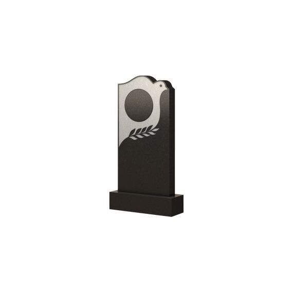 Оформление данного памятника выглядит просто и лаконично, но в то же время приковывает внимание своей необычностью. Верхняя часть стелы украшена образом белой птицы, похожей на голубя. Тем самым она символизирует миролюбивость, спокойствие, а изображение лавровой ветви отображает мужественность и сильные черты характера, коими обладал покойный при жизни. Круглая фигура в центре надгробия, несомненно поможет на долгие годы запечатлить в памяти светлый образ любимого человека, а вся мемориальная конструкция послужит превосходным вариантом чтобы отметить его место захоронения.