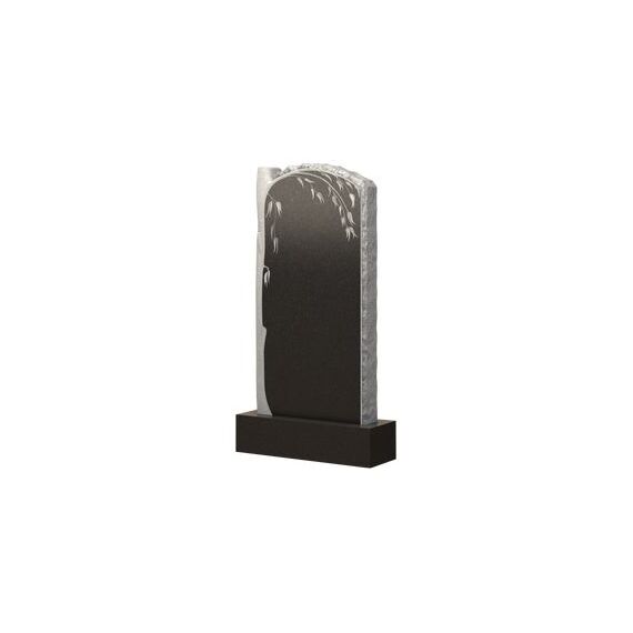 Представленная модель носит название памятника с коркой. Корка – это необработанная часть гранитного изделия, которая, как видно на изображении, расположена по боковой и верхней граням. Центральная часть, на которую будет нанесена информация о покоящемся человеке, отшлифована и отполирована. По одной боковой грани изображен ствол дерева, спадающие ветви которого служат дополнительным украшением. Такое изображение наполняет изделие чувственностью, эстетической красотой, а сочетание светлого цвета корки с темным оттенком основной части придает памятнику особенный вид.