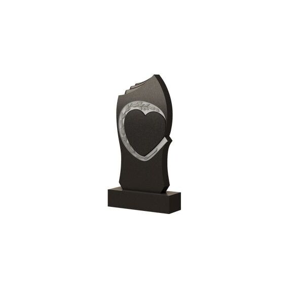 Композиционно интересная и наполненная внутренним смыслом форма памятника. Красивый и изящный силуэт стелы, представленный легкими волнообразными изгибами, перетекающими в прямые и ровные линии, венчается остроконечным углом на вершине, с которого плавными складками ниспадает драпировка. Главное место композиции изделия отводится резному узору, выполненному в центре плиты. Здесь прорисован барельеф в виде сердца, которое обрамляет тонкая веточка, усыпанная цветами и листвой. Всем своим существом, памятник подчеркивает не только боль от утраты, но и светлую, нежную любовь близких по ушедшему в мир иной дорогому человеку.