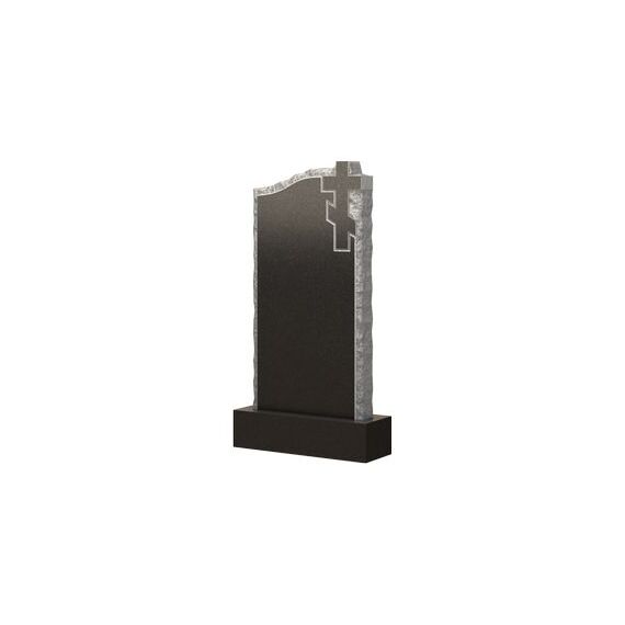 На представленном изображении видно необычное, но вместе с тем красивое сочетание полированной поверхности и необработанного камня. К такому способу оформления памятника применяется термин корка, который как нельзя лучше подчеркивает наличие на изделии неровностей. Гладкая часть повторяет фигурные контуры всей стелы — прямые боковые грани и волнообразная верхушка переходят в шестиконечный крест, являющийся центральным символом всех христианских религий. Надгробие станет достойной памятью умершим, и, как основной элемент любого мемориала, украсит собой место захоронения.