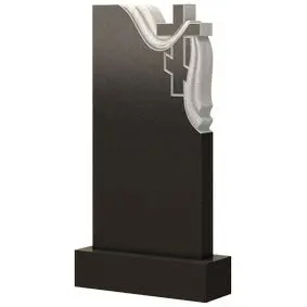Незамысловатая и строгая модель памятника прямоугольной формы, имеющая декоративное рельефное оформление в правом верхнем углу. Красивый православный крест прорезанный в стеле, задрапирован струящимися складками плащаницы, которая плавными волнами мягко обрамляет вершину и правую боковую грань надгробия. Левая сторона выполнена четкими прямыми линиями, которые задают общий тон мемориальному изделию, придавая ему сдержанность и лаконичность. Модель такой формы достойно оформит место захоронения покинувшего это мир близкого и любимого человека, сохранив добрую память о нем.