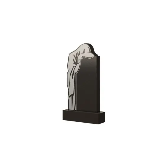 Выражением глубокой скорби и печали пронизана форма памятника. Фигурный силуэт плачущей девы, обрамляющий левую сторону надгробия, показывает всю горечь и боль, которой наполнены сердца родных, потерявших любимого человека. Правая боковая грань представлена четкой и ровной вертикалью, которая добавляет памятнику сдержанной строгости и лаконичности. Вся композиция модели имеет целостный и завершенный внешний вид. Надгробие такой формы будет одним и самых лучших вариантов обозначения могильного участка — оно сохранит добрую память о почившем и пронесет ее через года.