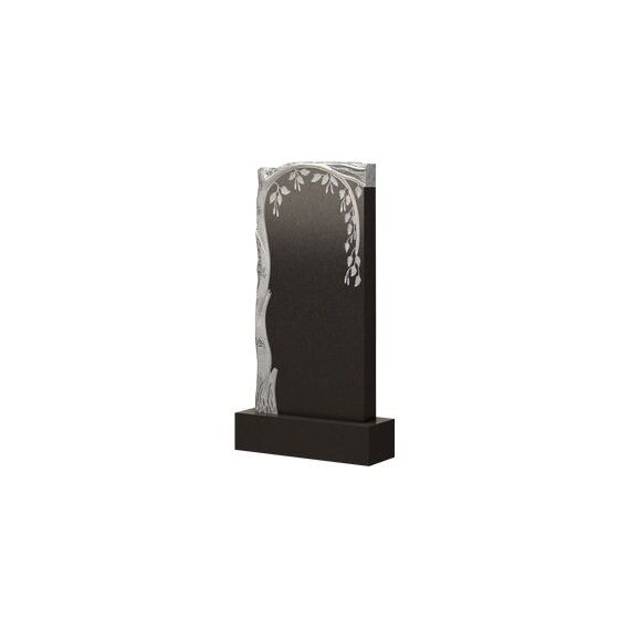 Модель памятника характерной прямоугольной формы, представленная и четкими прямыми линиями, и острыми неровными отрезками, составляющими общий контур мемориального изделия. Большую часть стелы по боковым граням обрамляет контрастная корка. На лицевой стороне памятника ее практически не видно, поскольку она прикрыта резным барельефом стройной молоденькой березки, изящно и элегантно обнимающей каменную плиту. Гибкие плакучие ветви дерева плавно свисают, словно поникнув в безмолвной печали. Такая эмоциональная выразительность надгробной модели поможет наиболее полно раскрыть всю глубину чувств родных к почившему дорогому человеку.