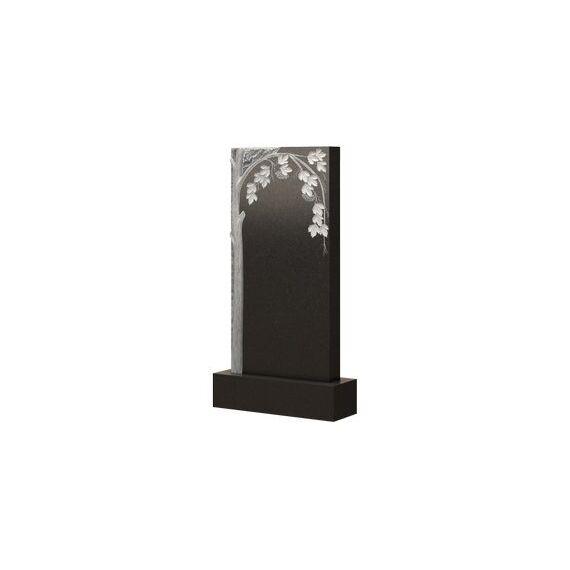 Модель памятника правильной геометрической формы, с остроконечными гранями и прямыми углами, наделяющими ее строгостью и лаконичностью. Такие характеристики подчеркивают вековечность мемориального изделия, способного точно и полно отразить личность покойного, сохранив в памяти родных милые сердцу черты. Лицевую сторону плиты дополняет красивый барельеф – стройная и утонченная калина, обрамляющая верхушку стелы раскидистыми ветками, усыпанными листвой и плодами. Дерево контрастным акцентом проходится по всей высоте мемориального изделия, добавляя немного изящества и неповторимости всей композиции сооружения.