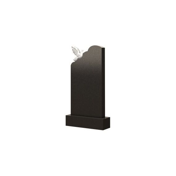 Модель памятника имеет достаточно сдержанную и лаконичную форму. Боковые стороны надгробия выполнены прямыми и ровными вертикалями. Верхушка предоставлена в менее строгом исполнении – волнообразные округлые дуги, подобно лесенке поднимаются от левого верхнего угла к правому, своими очертаниями напоминая силуэт легкого воздушного облака. Дополняет верхний край памятника, взмывающий ввысь красивый белый голубь – его голова поднята, а крылья широко расправлены навстречу свету. Силуэт всего надгробия, целостный и гармоничный, подчеркивает эмоциональную насыщенность мемориального изделия.