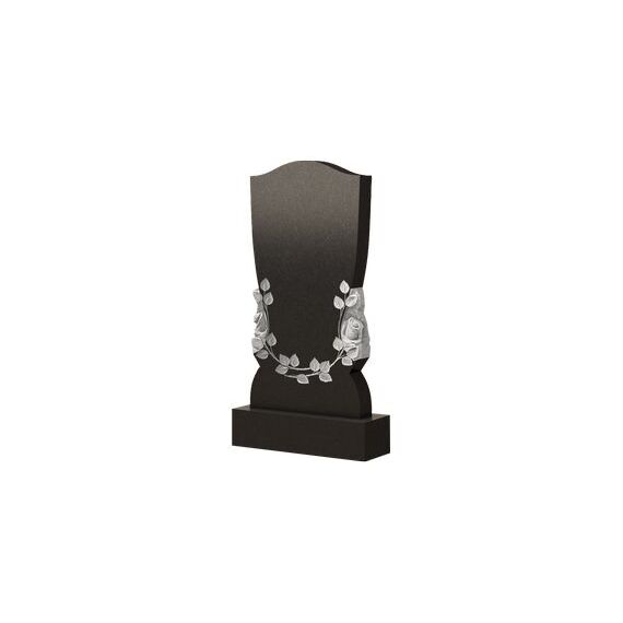 Изысканная и элегантно сложенная форма памятника, напоминающая своими очертаниями красивую вазу или старинный сосуд. Весь силуэт изделия, прочерченный плавными волнообразными линиями, которые наполняют его особой эмоциональной выразительностью. Дополняет общую композицию сооружения красивый цветочный барельеф из двух веток роз. Они изящными изгибами прорисованы по нижней половине стелы и визуально разделяют ее на две части. Модель памятника такой формы достойно увенчает место последнего приюта дорогого и всем сердцем любимого человека, а также отразит полноту и глубину чувств родных к усопшему.