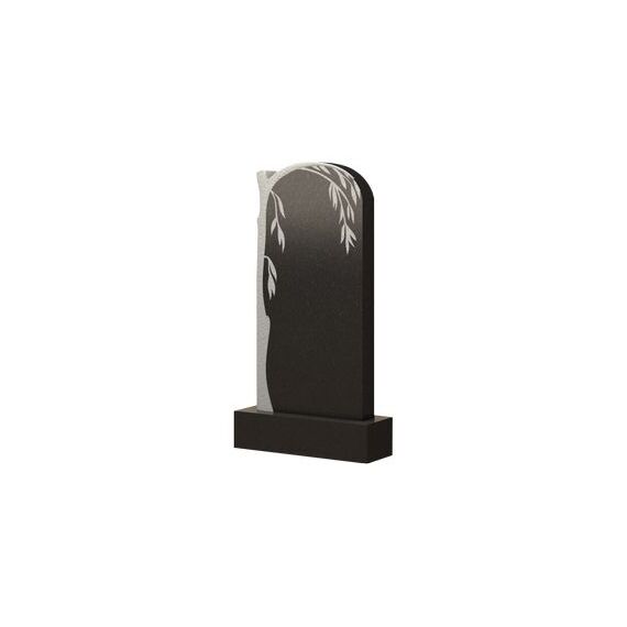 Представленное надгробие выделяется среди других не только необычной формой и исполнением, но и цветовым контрастом, который идеально подчеркивает красоту изделия. Черная гранитная поверхность великолепно сочетается с выгравированной склонившейся липой с нежными листочками, которые словно вот-вот зашелестят под порывом ветра. Такой силуэт подчеркнет и раскроет личность человека через свой символизм, отражая гибкость характера, нежность и доброту – одним словом, все то, что воплощает в себе это прекрасное дерево. Кроме того, такое расположение барельефа идеально обрамляет личные данные человека и фотографию, подчеркивая и выразительно выделяя их на общем фоне.