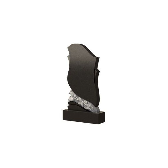 Эта модель памятника относится к категории фигурных, причем уже сразу можно обратить внимание на сложность исполнения. Надгробие разделено на две части вставкой в виде необработанной части камня, на поверхности которой вырезаны две изящные розы. Они имеют довольно крупные размеры, а их бутоны выступают за поверхность изделия. Интересное решение было принято художником относительно верхней части — своими очертаниями стела напоминает цветок, а нижняя изображает цветоложе. Такая тематика добавляет трогательность надгробию, помогает высказать любовь к умершему.