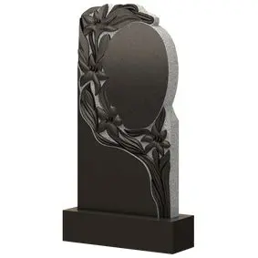 Представленная модель памятника напоминает зеркало, которое обрамлено большим количеством восхитительных цветов. Правая сторона надгробия оформлена в виде кромки, что придает всей мемориальной конструкции некую изящность и легкость. Изделие несет в себе глубокое значение, так как зеркало является символом мудрости и отражает красоту человеческой души. Благодаря этому, место захоронения, где главным акцентом будет являться такой памятник, создаст впечатление того, что здесь покоится человек, который очень много значил в жизни близких людей и его чистый образ навсегда остался у них в памяти.