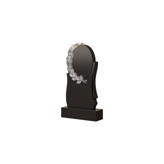 Памятник имеет довольно интересный и оригинальный внешний вид. Его правая сторона выполнена в форме ступенчатого узора, а левая похожа на силуэт морской волны. Овальная верхушка надгробия, которая украшена резными цветами, напоминает зеркало. Оно словно отображает светлый и чистый образ усопшего. Присутствующие на памятнике розы, придают всей мемориальной конструкции роскошь, изящество и великолепие. С помощью данной модели надгробия вы сможете красиво оформить место захоронения и подчеркнуть испытываемые горестные чувства по отношению к смерти любимого человека.