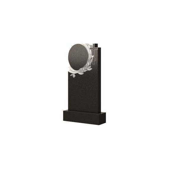 Данная модель памятника имеет ровные лаконичные боковые стороны и оригинально оформленную верхушку. С ее левой стороны располагается православный крест, а с правой овальная фигура, которую обрамляют лавровая ветвь и небольшие рельефные вставки, напоминающие рамку. Таким образом, надгробие позволяет выделить образ любимого и дорогого человека, покинувшего этот мир и указать на его религиозную принадлежность. С помощью листьев лавра вы сможете отобразить мужественность, силу воли, храбрость и другие отличительные черты характера свойственные покойному при жизни.