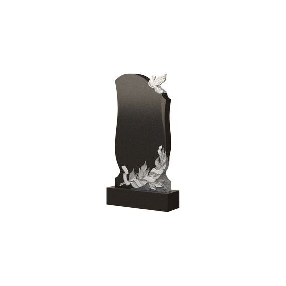 Надгробный памятник этой модели относится к фигурным, но оригинальный внешний вид ему придают резные элементы. Они присутствуют как в верхней части, так и у основания стелы. Надгробие венчает форма голубя – птицы, которая несет в себе особое значение. Она символизирует мир, свободу, доброту и нежность. Снизу вырезан образ ветви лаврового дерева – символизирующей такие черты характера, как мужественность, смелость, выносливость и справедливость. Благодаря такому оформлению, памятник становится уникальным и способным лучше любых слов рассказать об усопшем, как о личности, прошедшей достойный жизненный путь.