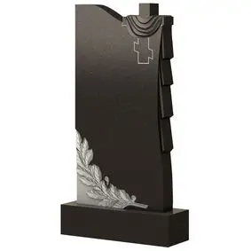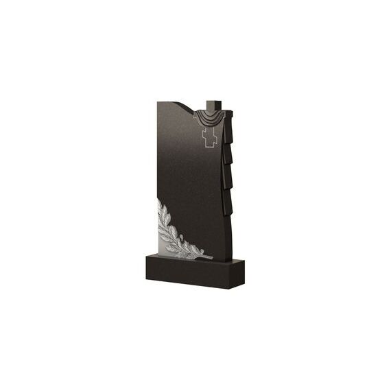 Слегка изогнутые стороны памятника создают неповторимый силуэт, дополненный и уравновешенный потрясающей гравировкой, выполненной в контрастных оттенках. Небольшой крест в правом верхнем углу, обвитый плащаницей, подчеркнет не только религиозность покойного, но и отношение, чаяния, надежды людей, которые решили установить подобное сооружение ему на могилу. Уравновешивает силуэт надгробия легчайшая гравировка лавровой ветви. Лавр часто ассоциируют с божественным провидением, победой, наградой. Такое надгробие станет отличным отражением лучших черт характера человека, коими он обладал при жизни.
