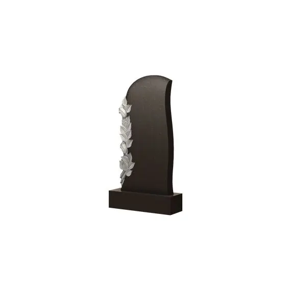 Модель, представленная на этом изображении, отличается плавностью линий, которые делают её более утонченной, привлекательной. По одной грани вырезаны две розы в окружении листьев, которые служат элементом оформления памятника. Они подчеркнут любовь к умершему, станут символом памяти. Традиция возлагать цветы на место захоронения тянется из глубин веков. В разных уголках планеты люди приносили и продолжают приносить букеты в знак почтения. Надгробие с изображением цветов подчеркнет бесконечное уважение к покойному, а также самые нежные и трогательные чувства, которые питают к нему родные и друзья.