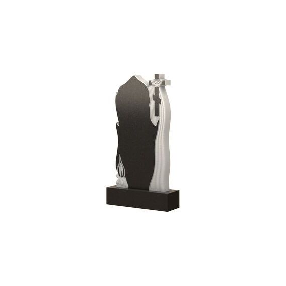Данная модель надгробного памятника содержит в себе фигурные боковые грани, которые замыкаясь в верхушке в виде заостренного уголка создают образ пламени. Крест, в правом верхнем углу оформленный плащаницей белого цвета, говорит о религиозной принадлежности покойного. Силуэт спокойно горящей свечи словно напоминает о том, что умерший человек обрел вечный покой, а его светлый образ навсегда останется в памяти родных и близких. Надгробие выглядит довольно контрастным, потому что многие элементы являются резными, благодаря чему изделие становится более изысканным и обворожительным.