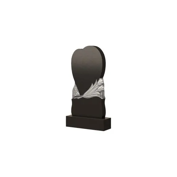Представленная модель — фигурный памятник, отличающийся плавными формами, художественностью исполнения. Нижняя часть округлена по боковым граням, а верхняя выполнена в форме сердца, которое подчеркивает нежную привязанность и любовь родственников и близких к умершему человеку. Между двумя плавными элементами надгробия расположен довольно грубый каменный отрезок, на поверхности которого вырезанны два тюльпана, символизируюшме почтение и вечную память. Такая вставка подчеркивает, что кроме любви в сердце родных людей остается нескончаемая тоска и боль от утраты.
