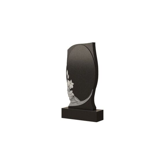 Это надгробие имеет особенный внешний вид. Его грани имеют неровные, но вместе с тем довольно плавные очертания. На поверхности стелы слегка проступает ещё одна фигура — овал, который по низу окантован цветами. Такая вставка делает изделие более чувствительным, нежным. Цветочная композиция не только украшает собой надгробие, но и подчеркивает боль от утраты, уважительно отношение к умершему. Памятник довольно нестандартной формы будет привлекать к себе взгляды, а отсутствие большого количества декора на поверхности изделия не отвлечет внимание от информации о покоящемся человеке.