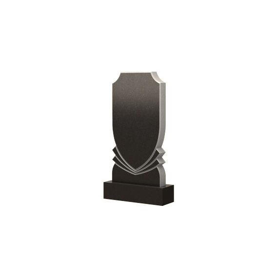 Представленная модель памятника выполнена в виде щита – символа защиты, веры, спасения, добродетели и благородства. Такая форма надгробия пришла к нам из далекого средневековья, когда на могилы павших воинов и рыцарей ставили каменную плиту или сам щит, принадлежащий погибшему. Из подножия мемориального изделия возвышается небольшой пьедестал, который удерживает защитное орудие. Благодаря этому все сооружение наполняется особым величием и монументальностью. Строгие ровные грани, дополненные плавными изогнутыми линиями, подчеркивают солидность и значимость надгробия. Памятник такой формы достойно увенчает место захоронения почившего родственника.