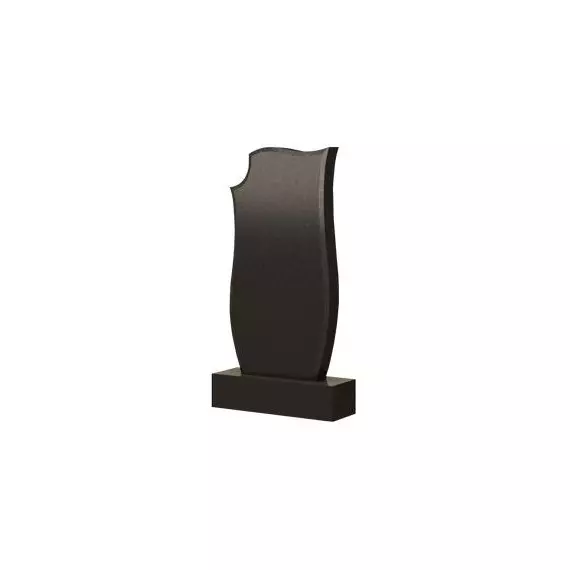 Представленная модель памятника относится к разряду традиционных фигурных надгробий и обладает мягкими чертами, благодаря тому, что все стороны изделия выполнены в виде плавных и дугообразных линий. Левый угол надгробия срезан полукругом, а остальная часть в некоторой степени повторяет изгиб морской волны. Боковые грани с двух сторон изящно поднимаются вверх, соединяются с оригинальной верхушкой памятника и тем самым создают неповторимую композицию ритуального ансамбля, который послужит отличным и достойным вариантом для обозначения места захоронения.