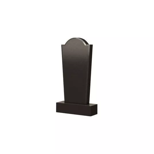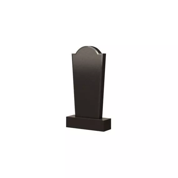 Нестандартный памятник, форма которого привлекает внимание. Две боковые грани сужаются к низу, а в верхней части образуют прямые углы. Эту угловатость смягчает венец надгробия — небольшой полукруг, который тем не менее очень сильно влияет на весь внешний вид изделия. Он придает модели особую привлекательность, мягкость, изящество и даже некую пикантность. Такой памятник ненавязчиво привлекает внимание. Как и любое подобное изделие мемориального искусства, он сохраняет память об ушедшем человеке, перенося её из года в год, из поколения в поколение.