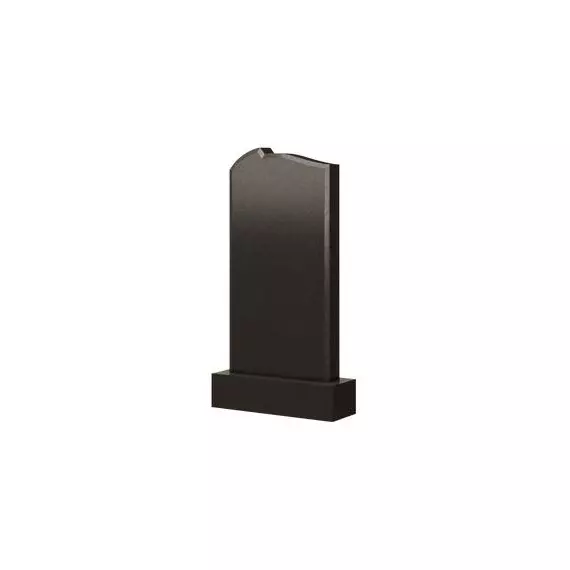 Представленный памятник по внешнему виду очень схож со стандартными моделями — это выражается в прямых боковых линиях. Однако, нельзя не заметить его сложную, но весьма красивую верхнюю грань. Плавный, небольшой изгиб заканчивается небольшим ответвлением, которое как бы указывает вверх, в небо, где сейчас находится душа умершего человека. Волнообразная грань делает внешний вид надгробия более интересным, несколько замысловатым, чем у простой прямоугольной модели. Такой памятник поможет ненавязчиво передать информацию о покойном, достойно украсит и обозначит могилку.
