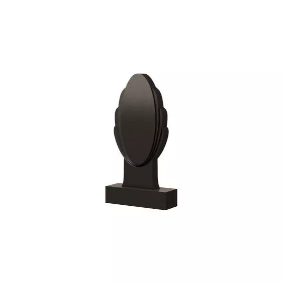 Памятник красивой и необычно изысканной формы. Ровный и аккуратный контур овала изящно обрамляется полукруглыми дугами лепестков, которые подобно лесенке поднимаются к вершине надгробия, но немного не доходят до нее. Вся эта композиция водружена на невысокую трапециевидную подставку, соединяющую воедино овальную часть памятника с его основанием. Надгробие такой формы позволит гармонично разместить на стеле портрет покойного и основную информацию о нем, не создавая эффекта загроможденности и сохранить в камне на долгие годы добрую память о почившем родственнике.
