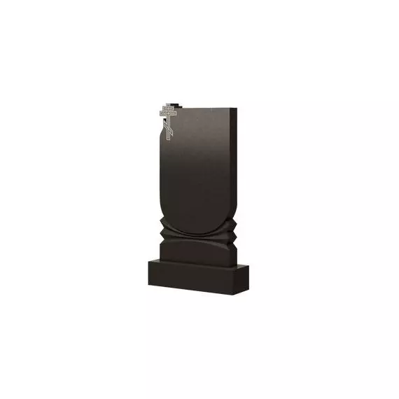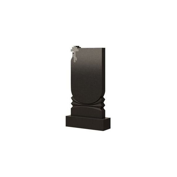 Скромная и одновременно весьма разнообразная модель, которая относится к категории фигурных надгробий. Верхняя часть имеет прямоугольную форму, один уголок которой скошен, к низу же она округляется и переходит в рельефный узор. Венчает изделие восьмиконечный крест, который соответствует православным канонам, поэтому его можно использовать для обозначения христианского захоронения. Несмотря на достаточно строгую форму, благодаря вставкам — узору и кресту — она мягко и ненавязчиво подчеркнет значимость ушедшего человека для его родных и близких. Отсутствие сложных художественных деталей не лишает надгробие внешней привлекательности, но делает его более утонченным.