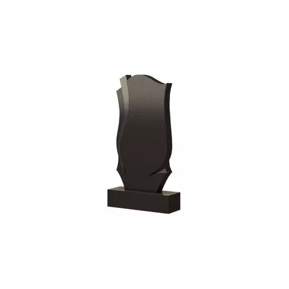Одна из интересных и композиционно сложных моделей памятников. Ее форма представлена замысловатыми изгибами боковых граней, которые достигнув верхних краев стелы образуют крупную высокую волну и мягко соединяются на вершине надгробия. Изящная вставка в левой части памятника, имеющая плавные дугообразные изгибы, прорезает изделие по всей его высоте и, впившись своим шпилеобразным острием, застревает в камне, так и не достигнув основания надгробия. Правая боковая грань модели украшена изящным угловатым вырезом – остроносым в глубине стелы и постепенно расширяющейся к ее краю. Памятник такой формы станет достойным оформлением могилы родного человека.