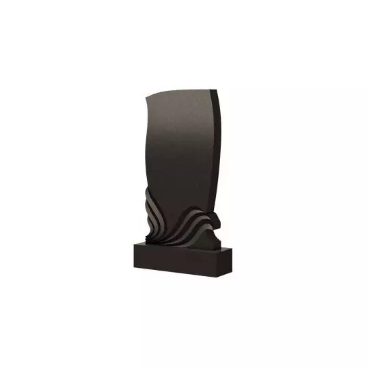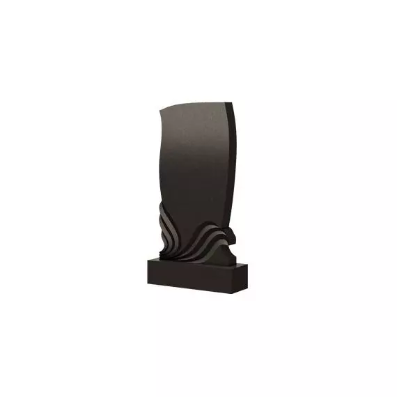 Простая и в то же время оригинальная модель памятника, оформленная у основания красивым рельефным узором. Две крупных волны, выплывающих из нижнего левого угла стелы, у стремились в разные стороны. Их ребристые резные изгибы легкой рябью растекаются к боковым краям плиты. Верхняя часть надгробия представлена ассиметричным прямоугольником, немного скошенным от правого верхнего края к левому. Каждая линия, прочерчивающая силуэт изделия, является отражением самых теплых и искренних чувств близких по почившему. Модель такой формы станет отличной памятью в камне, сохранившей на многие годы милые сердцу черты усопшего родственника.