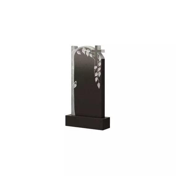 Памятник выглядит оригинально и живописно. Такой образ ему придает наличие резных элементов. Левая сторона надгробия украшена изображением величественного дерева, чья ветвь повторяет дугообразный силуэт верхушки, а листья грациозно располагаются на основной части стелы, тем самым представляясь неким обрамлением для портрета усопшего. Правый верхний угол венчает православный крест, что указывает на вероисповедание покойного и присваивает мемориальной конструкции религиозную направленность. С помощью данного изделия вы сможете достойно обозначить захоронение усопшего родственника и надолго сохранить в памяти его светлый образ.