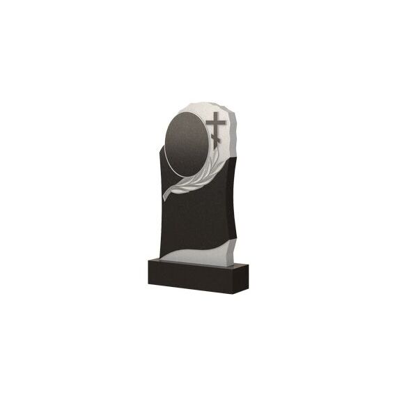 В этом памятнике присутствует как оригинальность и очаровательность, так и символичность, заключающаяся в резных элементах. Пространство, где может быть размещена основная информация об усопшем, располагается у основания стелы. Оно обладает волнообразными чертами и отлично гармонирует с белой вставкой снизу. Для размещения портрета здесь отведено специальное место в верхней части. Это овальная фигура, которую отлично дополняет образ лавровой ветви и силуэт православного креста с правой стороны. Таким образом, надгробный памятник способен отобразить сильные черты характера покойного, а также рассказать о том, что он соблюдал и чтил традиции своей веры.
