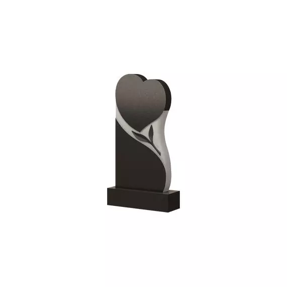 Образ представленной модели миловидный, элегантный и оригинальный. Верхушка надгробия выполнена в форме сердца, что символизирует любовь родных людей к усопшему человеку. В центре стелы изображена ветвь, которая гармонично дополняет оформление изделия и помогает отобразить быстротечность жизни. Также стоит отметить, что надгробие выглядит контрастно, потому что все его боковые стороны обладают белым цветом. Установив эту мемориальную конструкцию на место захоронение дорогого человека, вы сможете на длительное время сохранить в памяти его светлый и безупречный образ.