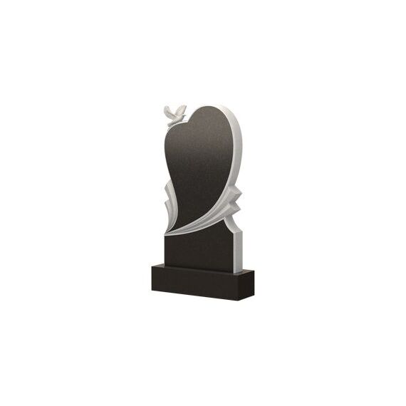 Надгробный памятник представляет из себя мемориальное изделие превосходной и весьма оригинальной формы. Верхняя часть стелы выполнена в виде сердца, черты которого в точности повторяют небольшие белоснежные рельефные вставки. Верхушку надгробия венчает силуэт голубя с расправленными крыльями, символизирующего мир и спокойствие. Благодаря тому, что все края надгробия имеют белый цвет, конструкция приобретает красивую контрастность и становится способной стать элегантным акцентом на захоронении человека, которого любили и ценили при жизни.