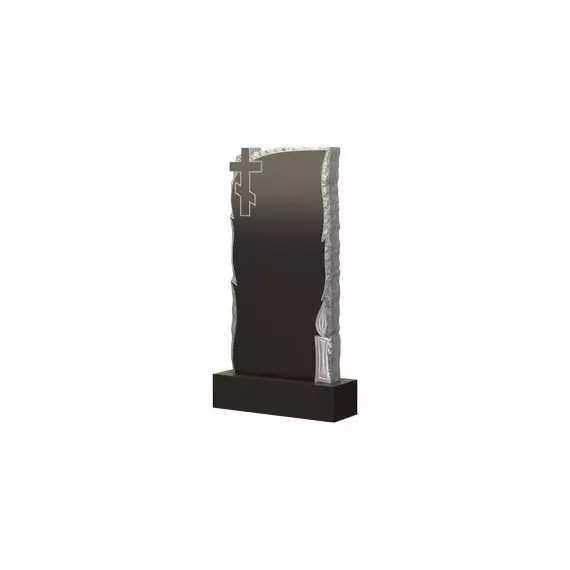 Надгробие со светлыми шероховатыми краями выглядит весьма необычно, утонченно и воздушно. Основание стелы украшено образом горящей свечи, а основная поверхность плиты в точности повторяет плавные очертания ее спокойного и размеренного пламени. Левый угол верхушки надгробия венчает вырезанный православный крест, благодаря которому конструкция приобретает религиозную направленность, тем самым указывая на вероисповедание покойного. Данная модель мемориального изделия послужит неплохим вариантом для того чтобы достойно обозначить захоронение почившего родственника.