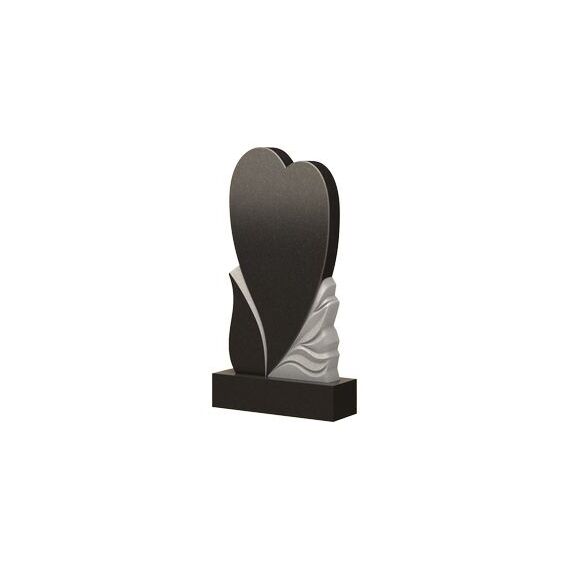 Ни что не сможет лучше выразить любовь и нежность в камне, кроме изображения сердца. Его силуэт прочерчивает основную часть стелы – большое и вытянутое, оно наделяет памятник особой эмоциональной выразительностью. В нижней части плиты, символ любви мягко обрамляют дополнительные элементы общей мемориальной композиции. С правой стороны разместилась контрастная вставка, с прорезанными в ней плавными волнообразными линиями и острыми гранями. Левый нижний край украшает крупный листок, который, спускаясь от середины боковой грани, утопает в основании памятника. Такое надгробие будет ярким элементом в общем ансамбле места захоронения.