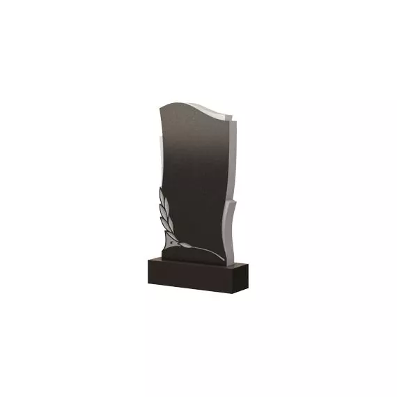 Изящная и элегантная форма модели памятника, прочерченная плавными волнообразными линиями, соединенными между собою остроконечными углами. Весь силуэт надгробия целостен и гармоничен. По боковым граням и по вершине мемориальной плиты прорисованы контрастные ребристые вставки, красиво обрамляющие плиту. Нижнюю часть стелы оформляет декоративная гравировка в виде изящно изогнутой ветки дерева, плавной дугой, проходящей по всей ширине плиты и поднимающейся к вершине памятника по левому краю. Данная модель мемориального изделия достойно оформит место последнего приюта почившего близкого и родного человека и пронесет его светлый образ через года.