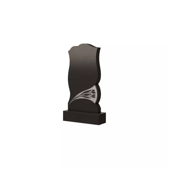 Данную модель можно отнести к разряду фигурных памятников. Ее боковые стороны имеют плавные изгибы, которые замыкаются в волнообразной верхушке. Благодаря этому, надгробие принимает образ прекрасного и восхитительного цветка. По своим очертаниям он напоминает тюльпан. Его изображение имеется и у основания стелы. Оно выполнено в черном цвете на белом фоне. Такое оформление делает мемориальную конструкцию более изящной и привлекательной. Кроме того, цветы в камне выглядит так, словно их возложили родные и близкие в память о покоящемся в этом месте дорогом и любимом человеке.